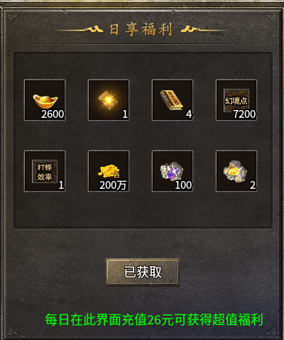 做完之后购买新游福利 38、58、88元、在开通月卡、升级每日成就称号(升完称号需要 23200 元宝)