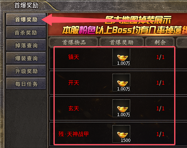 首杀奖励元宝高达12万6千元宝!首爆高达15万6千元宝!