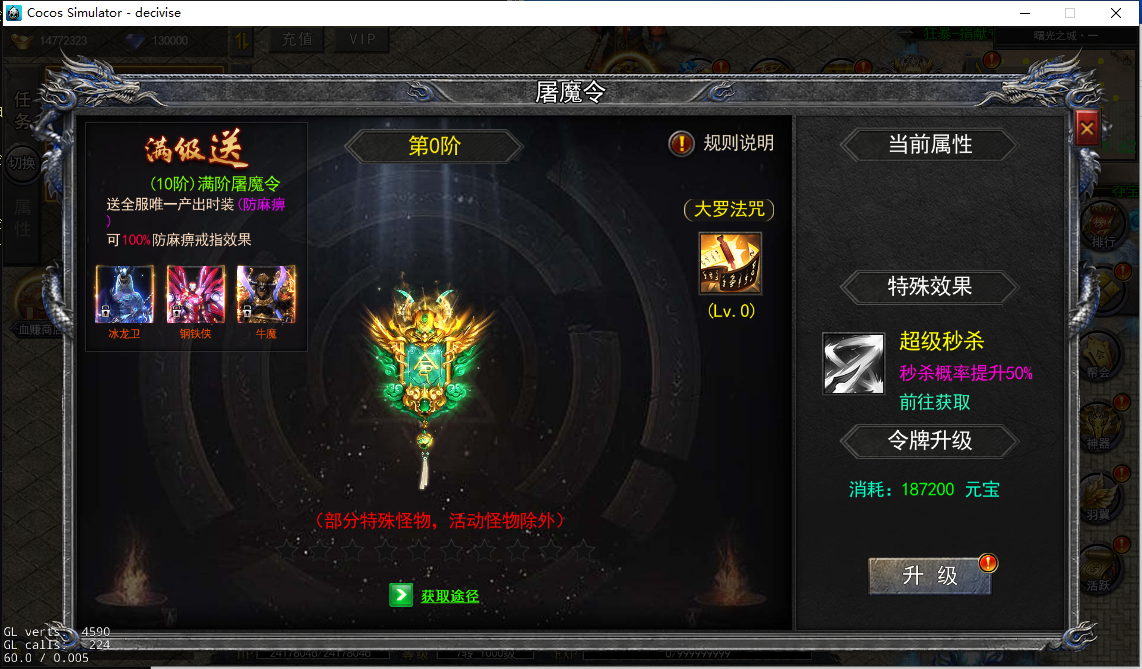 取消技能CD:战士的“烈火剑法”、法师的“冰咆哮”等技能不再受冷却时间限制;
