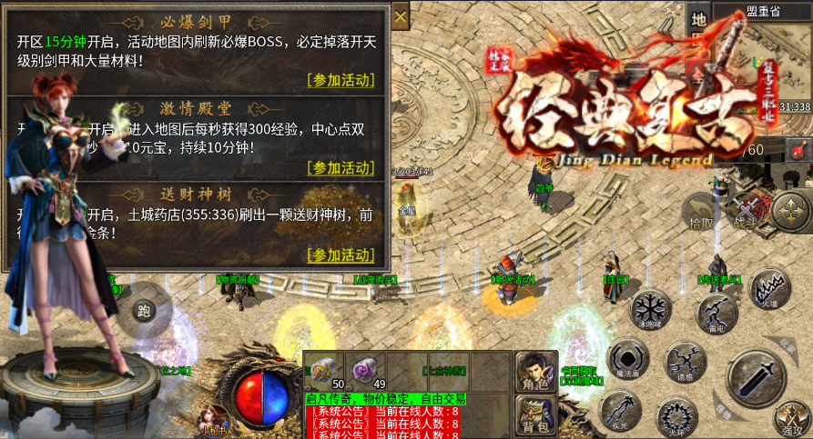 新区开放激情殿堂,每秒获得300点经验,中心点双倍经验活动地图除了刷新珍贵药材和BOSS,还能获得泡点经验