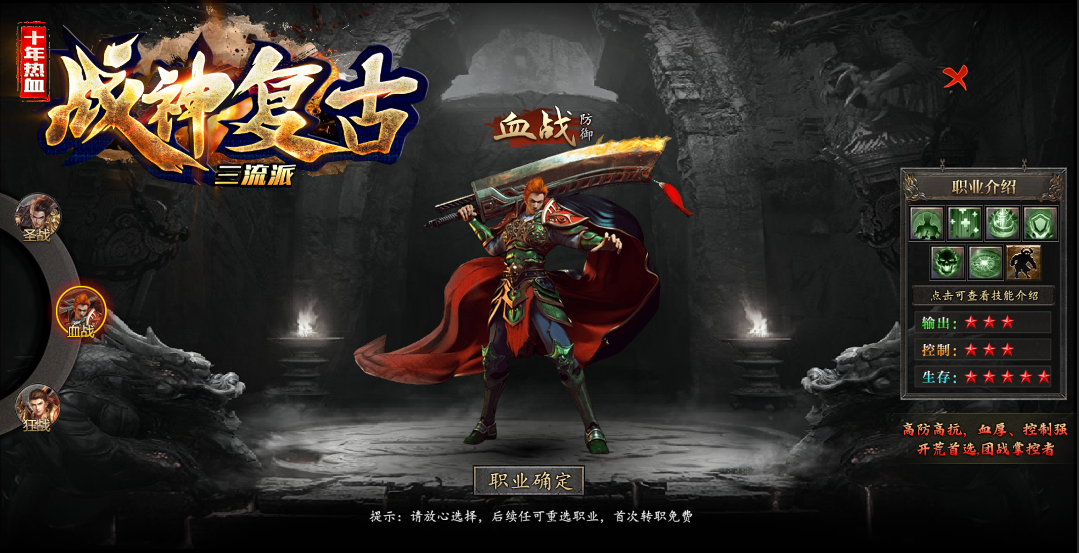 职业介绍:高防高抗,血厚,控制强,开荒首选,团战掌控者