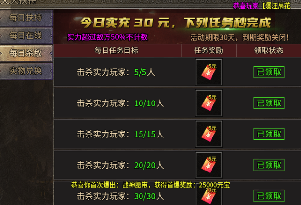 点开每日扶持里面任务直接全部解锁完,直接领取差不多两百的充值!所以冲100的号落地300多!!!这个时候的VIP等级直接来到了V10,丝滑无敌!