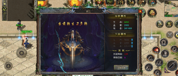 Boss血量高,慢慢磨,只需要爆出一把高一点的武器就可以打怪无压力,武器加攻速可以大大提升打怪速度。然后依次下后面图专门打boss即可。接着做转身,等级够了就可以免费转,(但10转以后转生会掉等级)。后续下图条件也都是转身。
