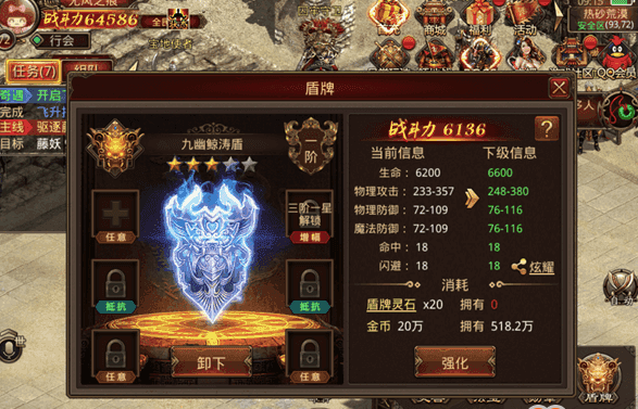 - 注意风险:虽然升级四级武力盾可以提升角色的实力,但也存在一定的风险。如果升级失败,可能会导致材料损失或者武力盾降级。因此,在升级前,玩家需要仔细考虑并做好准备。