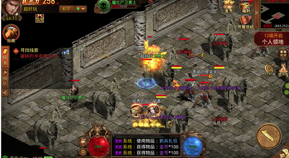 - 游戏提供了多种升级方式,如直接PK鹿怪、购买基础剑术等招数辅助刷怪、前往沃玛森林打雪人等。